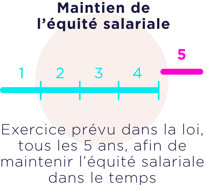 L’exercice prévu dans la loi, tous les 5 ans, permet de maintenir l’équité salariale dans le temps et d’ainsi prévenir la discrimination.